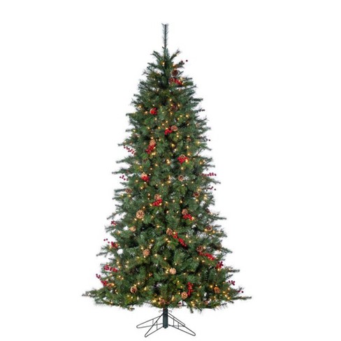 Classic Full Pre Lit Christmas Tree With Berries And Pine Cones Clear 7 5 Ft Walmart Com Walmart Com
