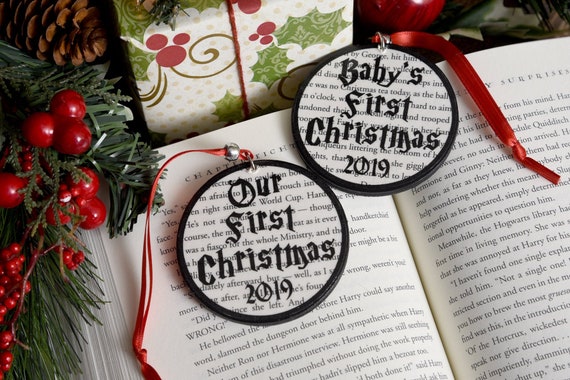 Hp Book Page Baby First Christmas Ornament 2020 Our First Etsy