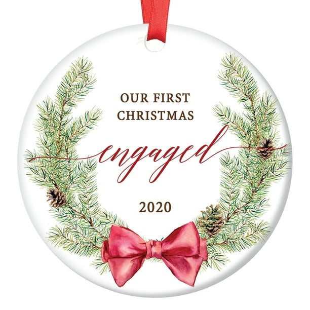 Our First Christmas Engaged Ornament 2020 Wreath Engagement Gift Porcelain Ornament 3 Flat Circle Christmas Ornament With Glossy Glaze Red Ribbon Free Gift Box Or00038 Chris Gail Walmart Com