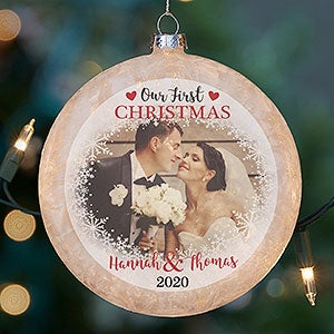 Our First Christmas Lightable Frosted Glass Photo Ornaments
