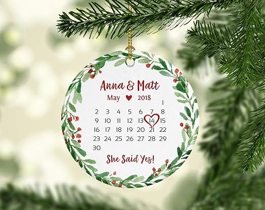 Amazon Com Cheyan Personalized Engagement Gift For Couple Engagement Party Gift For Bride Engaged Ornament Engagement Christmas Ornament Date Kitchen Dining