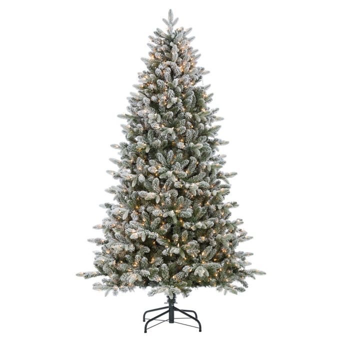 7 5 Foot Pre Lit Flocked Swiss Mountain Fir Pine Christmas Tree Bed Bath Beyond