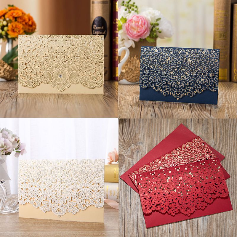 Gold Red White Laser Cut Luxury Flora Wedding Invitations Card Elegant Lace Favor Print Envelopes Wedding Party Decoration Blank Greeting Cards Boxed Christmas Cards From Laowang1769 1 99 Dhgate Com