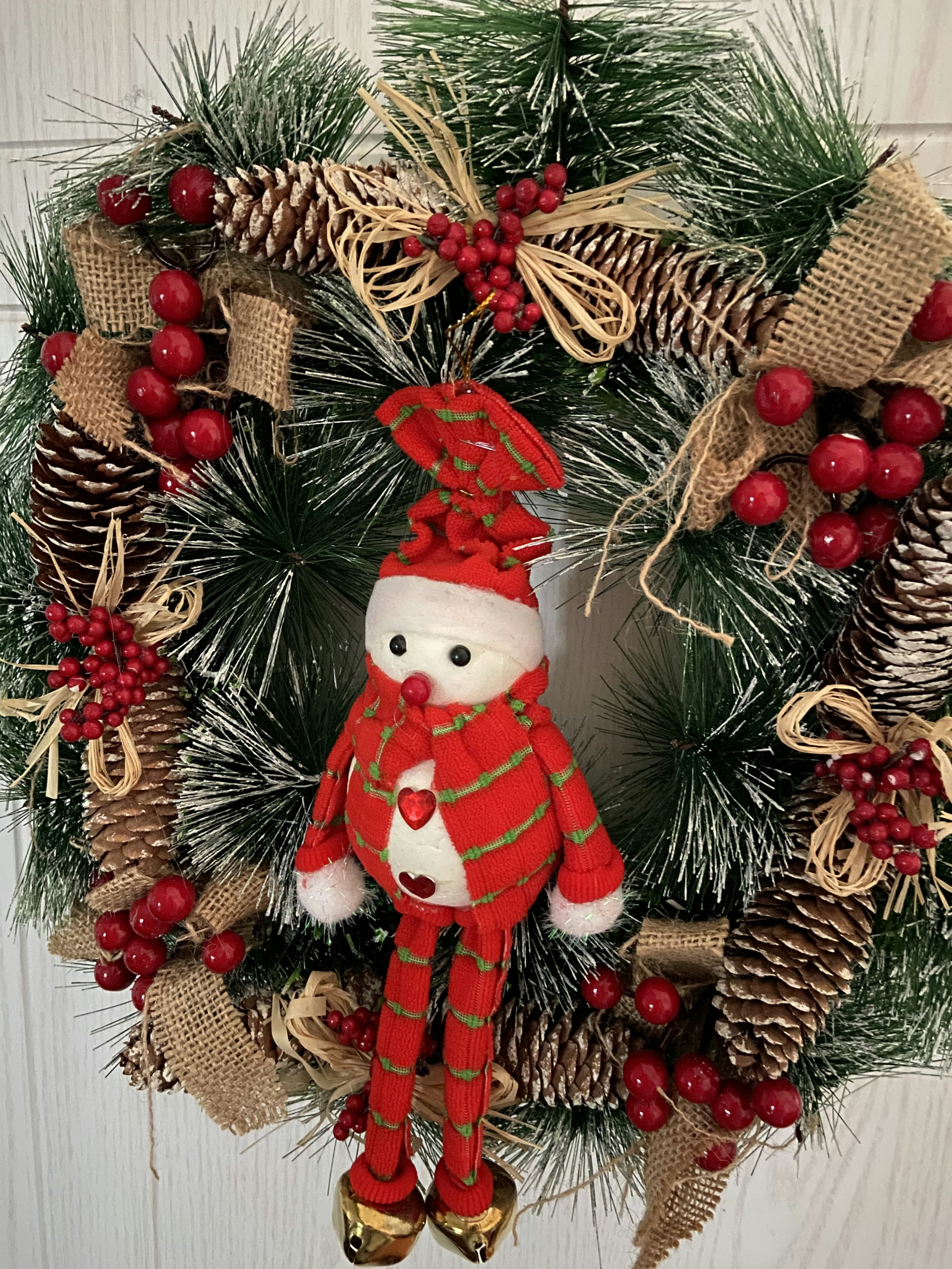 Red Gold Holiday Wreath White Flocked Wreath Sleigh Bells Etsy